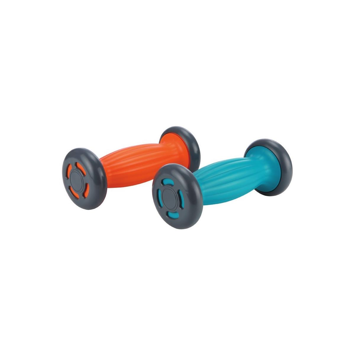 Made of rigid plastic and non-slip wheels. Polypropylene and Thermoplastic rubber.