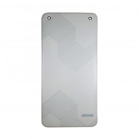 Light grey gym mat made of high quality and resistant non-slip materials. Adapted to your body, with a perfect thickness to cushion shocks and be very comfortable. Ideal for fitness, functional or sports training. With two eyelets for storage on wall hooks.